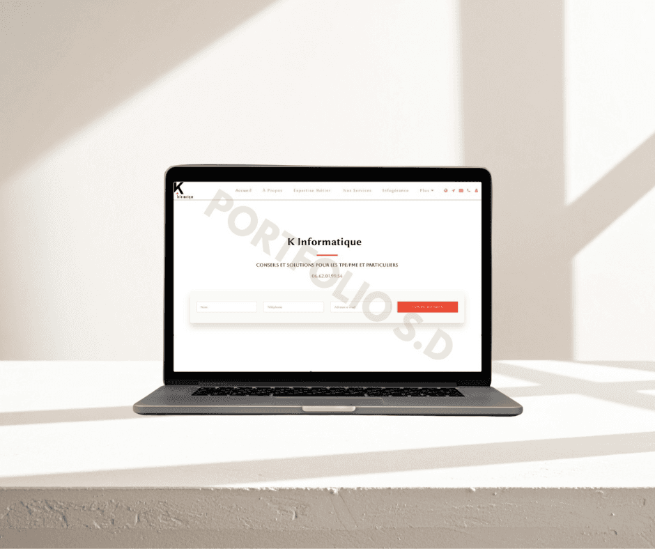 Refonte complète du site web de K INFORMATIQUE avec une approche UI/UX centrée sur le professionnalisme et l'expérience utilisateur. Restructuration du design en respectant l'identité visuelle existante et optimisation SEO pour améliorer la visibilité locale.